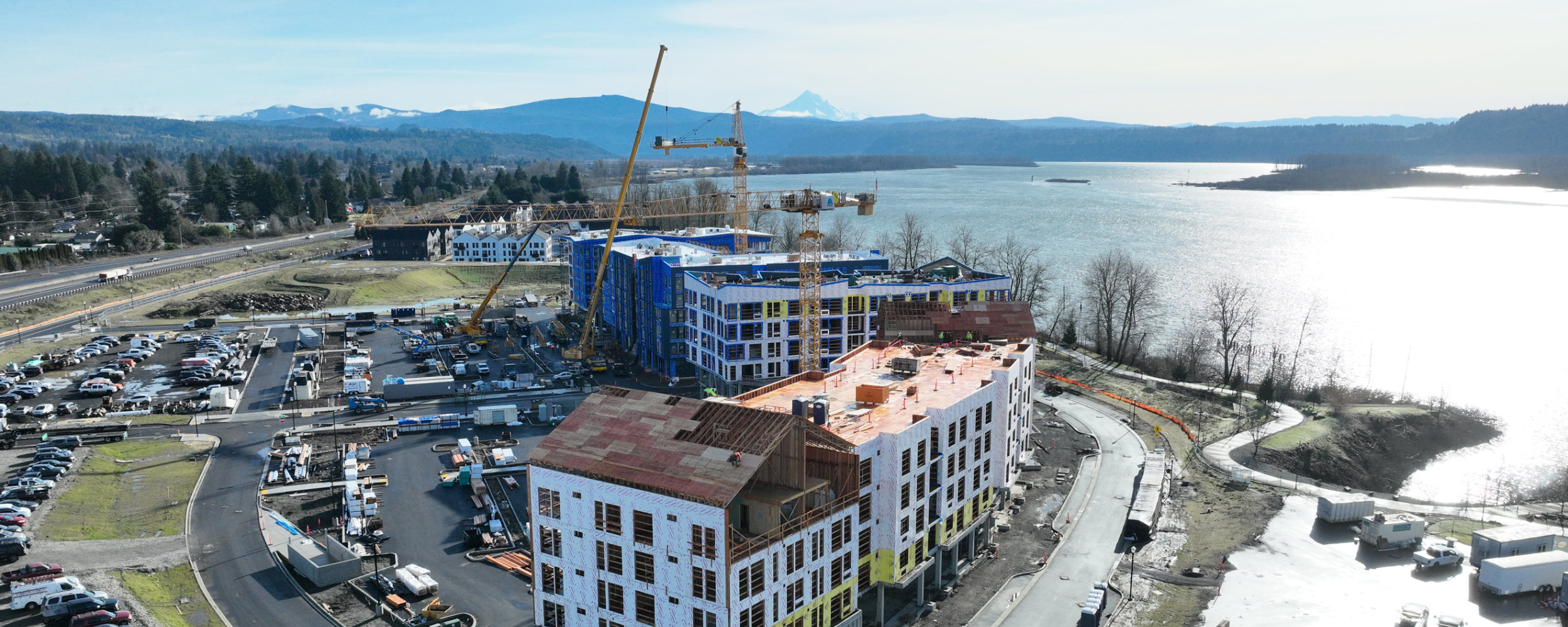 In September, we encountered our first weather challenges in a very long time! While some concrete pours had to jump around in schedule due to rain, we remain on track and continue blazing full speed ahead. Concrete was the big driver in September with pours happening at different times across multiple buildings and framing following quickly behind. As concrete approaches its end with the final pours for Sitka and Klipsan buildings continuing through October, framing continues to make significant gains, with Broadrock building reaching the very top floor with anticipation of “topping out” that building later this month. October will continue to be all about framing as concrete phases out. We look forward to cooler weather ahead as the buildings take form!