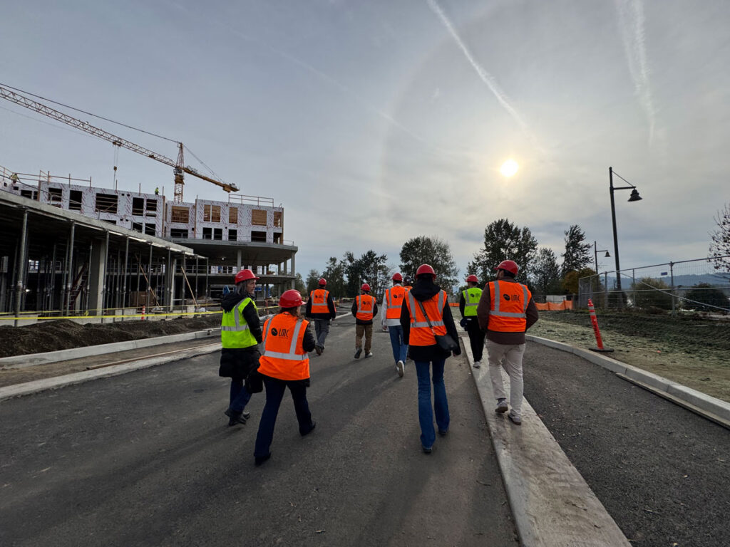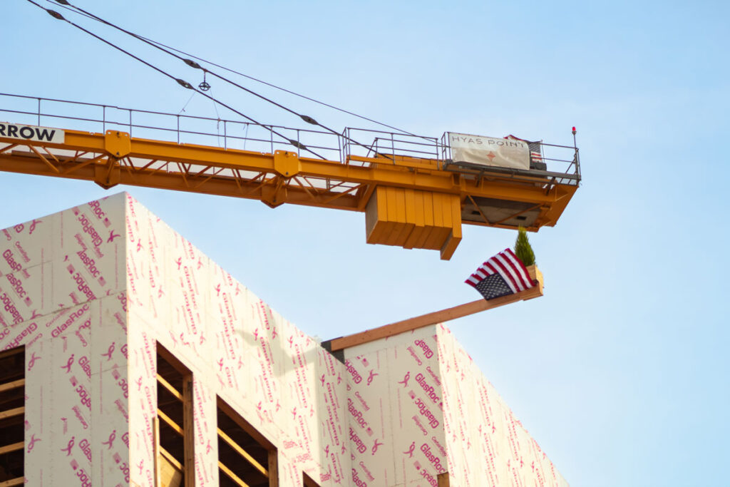 RKm Development and the Port of Camas-Washougal celebrated a major construction milestone for Hyas Point on October 31 — the structural completion, or “top out,” of the development’s first six-story building along the Washougal Waterfront.