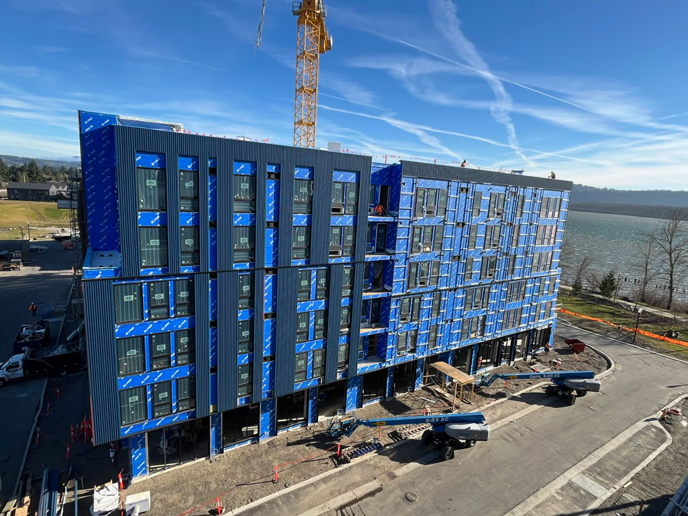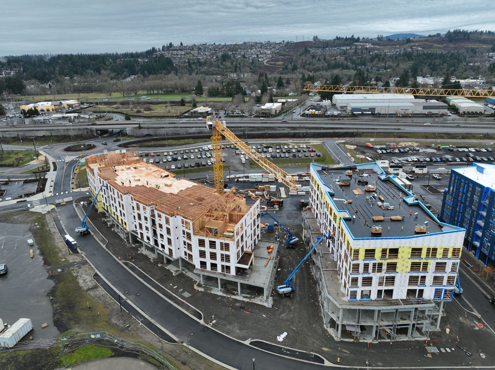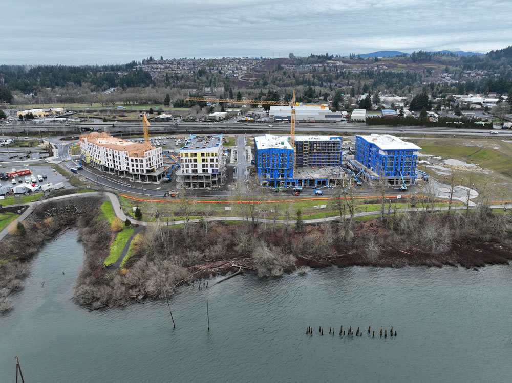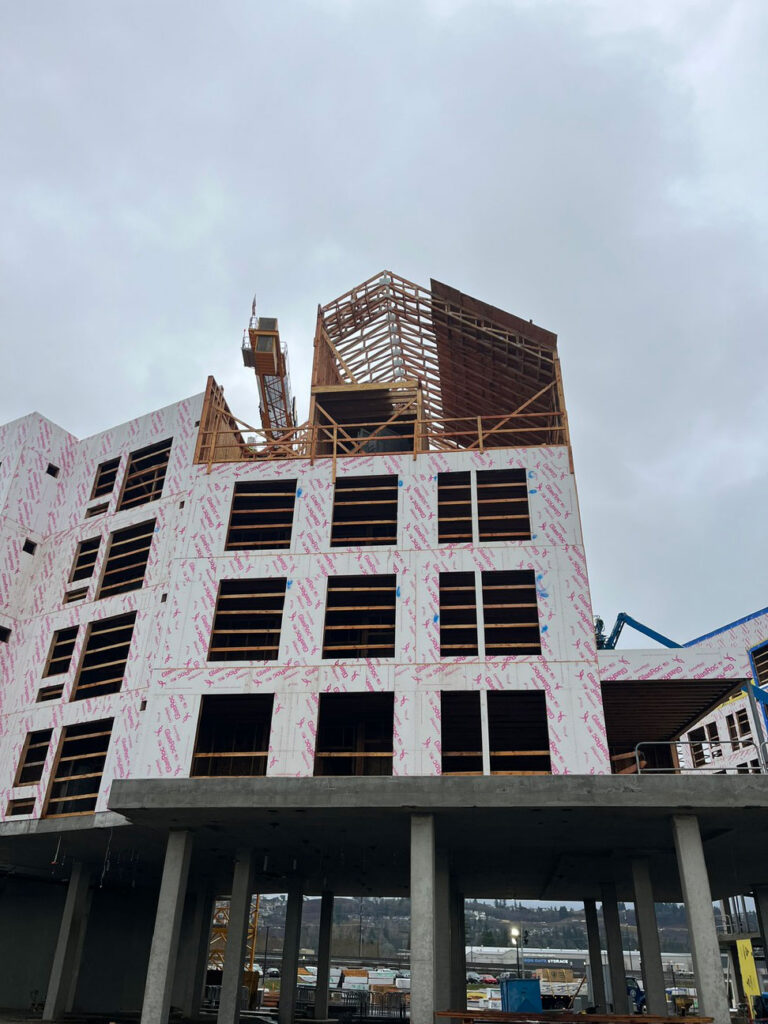 January was a busy one for framing on Klipsan (Building A), which just topped out last week, and the incredible lofted roof trusses are going up in earnest. Klipsan framing will complete in February, and then structural work will complete across Hyas Point – incredible! While things might have looked quiet on the outside of Broadrock and Cascara, there was a lot happening on the inside, with utilities infrastructure pulling down the building and drywall work beginning. We are getting an increase of interest in commercial space, so be sure to reach out if you know anyone who might want to have a business at Hyas Point.