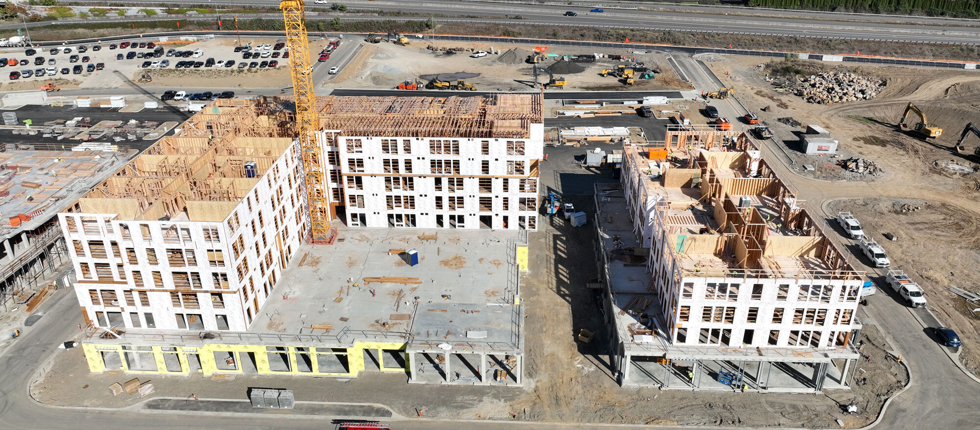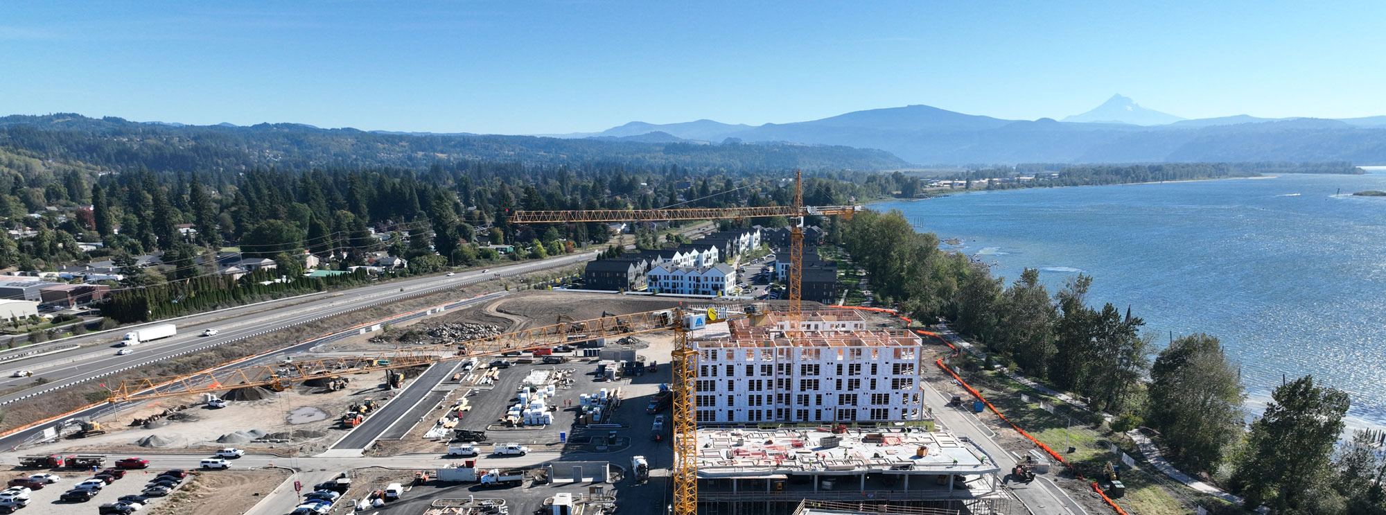 June aerial view construction at Hyas Point Apartments in Washougal